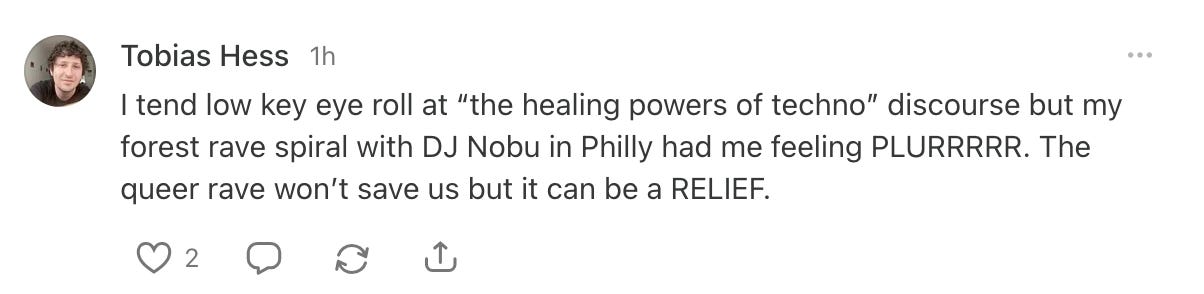 One of my most popular letters explored the rise of the soft club, where non-traditional spaces like bakeries, laundromats and coffee shops are transformed into mini raves. There’s also been plenty of discourse around the importance of partying, sparked by Derek Thompson’s viral Substack on how partying is dead in the US (apparently, it’s down 70%).