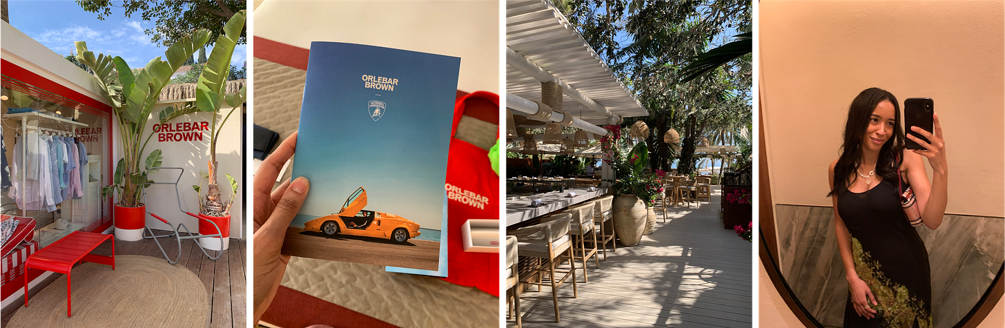 I was there with a few other journalists and content creators, celebrating the launch of Orlebar Brown’s latest collection with Lamborghini. We were hosted at the Puente Romano resort, a tropical Spanish wonderland filled with heavenly restaurants (Cipriani, Nobu, Gaia, Uni, Chiringuito), seven pools, a nightclub, a Six Senses spa, and not one but two Orlebar Brown stores. It was the kind of place you could arrive at and genuinely never need to leave.
